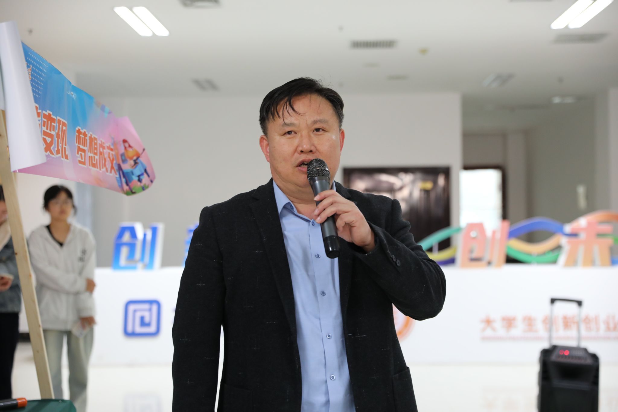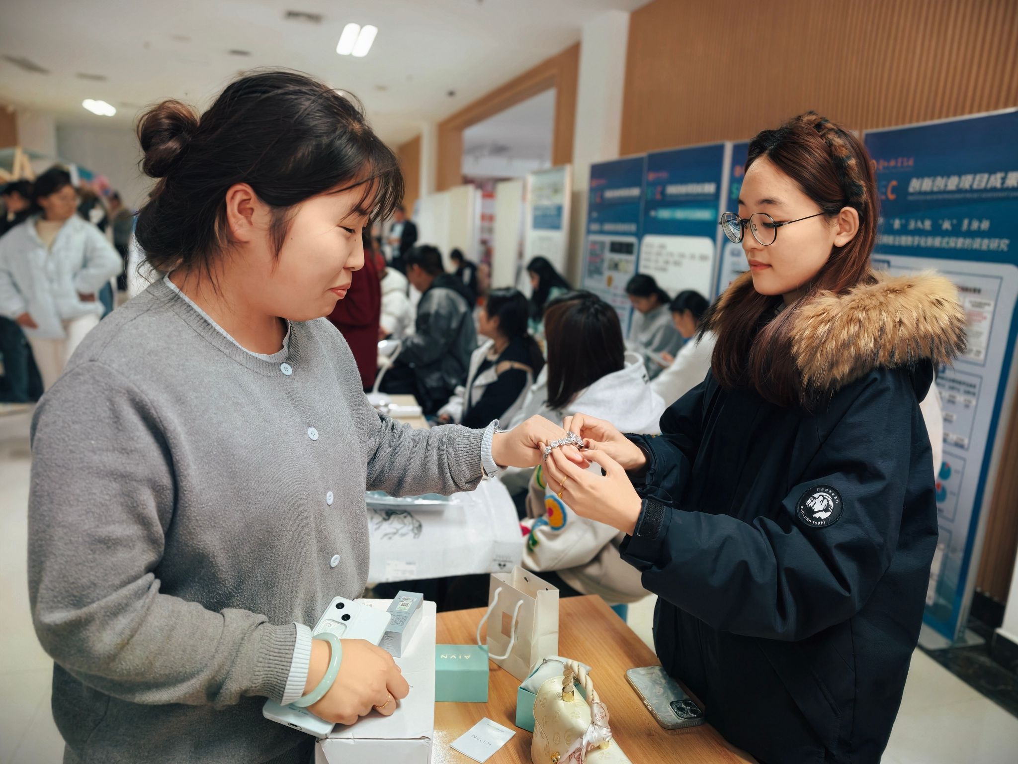 11月4日下午,由创新创业学院与团委联合打造的“青春不打烊·市集趣玩季”青春市集在培训中心东附楼一楼“鲁彬之”众创空间火热开市。活动为广大师生搭建起展示创意、交流灵感、实践创业的一站式平台,吸引200多名同学踊跃参与,现场人头攒动、气氛火爆,成为初冬校园里最具人气的“青春打卡地”。