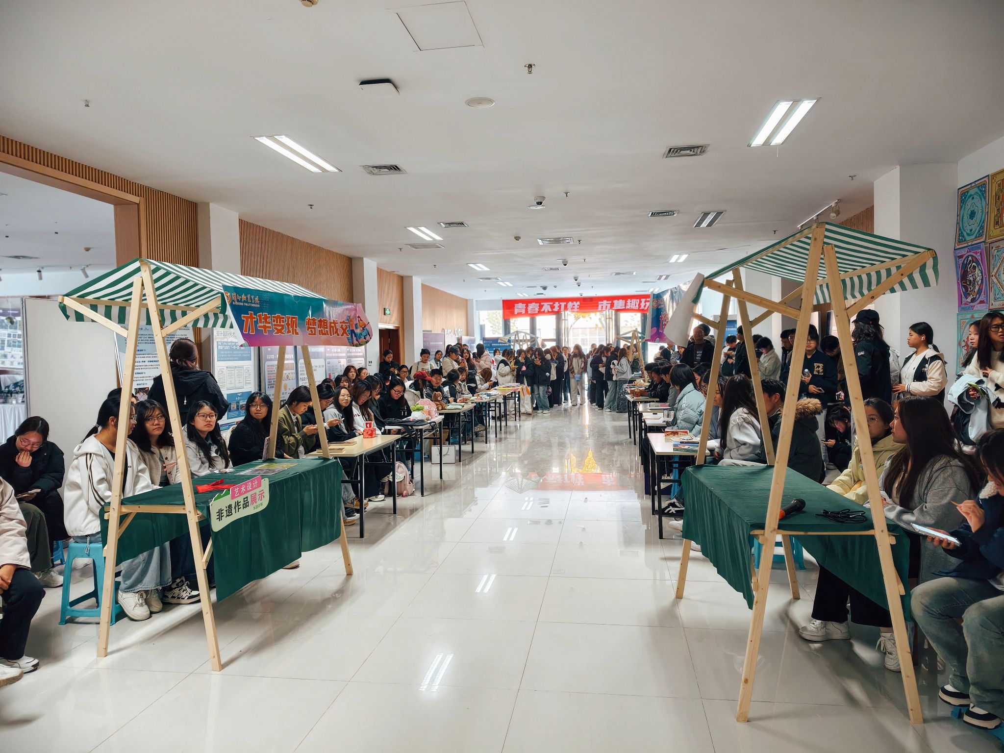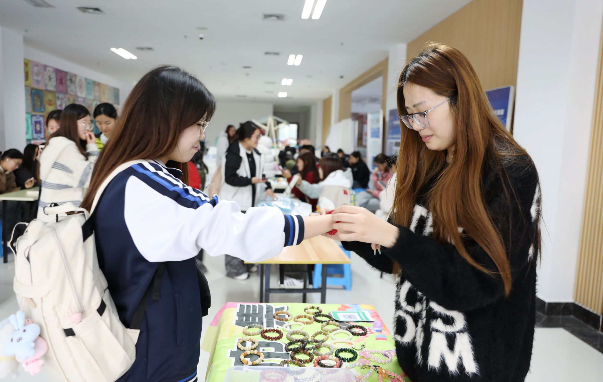 在市集里,一支旧球拍、一摞四级真题、一只手绘帆布包,都成了“会说话”的简历。同学们以物为媒、以市为课,把闲置变流通,把创意变订单,把摊位变工位。每一次讨价还价都是一次商务谈判,每一次脑洞陈列都是一次品牌路演,每一次扫码成交都是一次用户运营——跳蚤市场悄然升级为“就业能力实训场”。将自己制作的手工艺品、用过的“英语四级”等学习资料、闲置的羽毛球拍等物品拿到市集进行物物交换或者售卖,让闲置流动起来。青春市集平台的搭建,是给学生就业能力的培养,是将传统跳蚤市场升级为“就业创业能力实训场”。